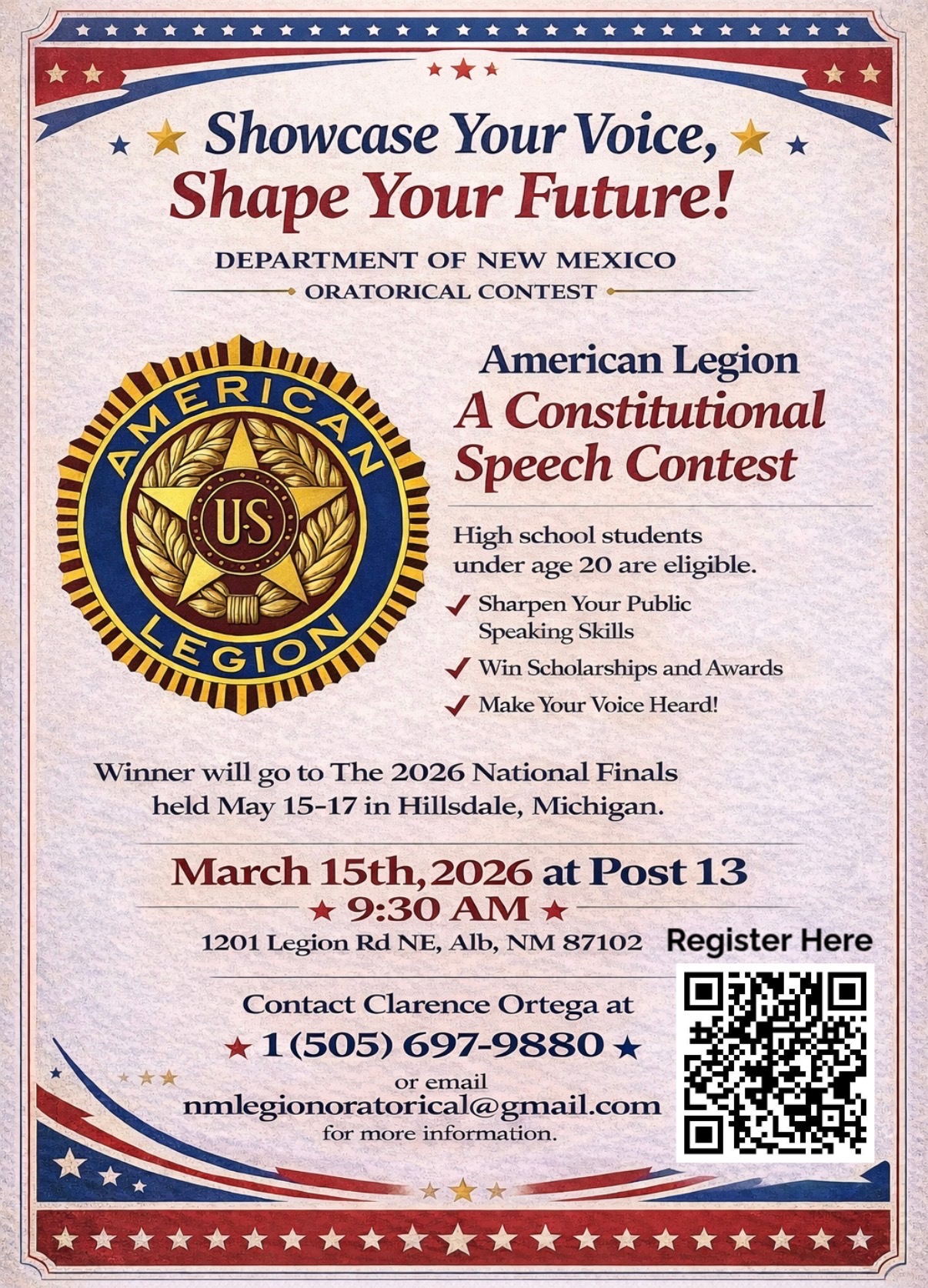 @ Hosted by Post 9; Presbyterian Church; 205 N Church Ave., Aztec, NM Mtg. 11:00